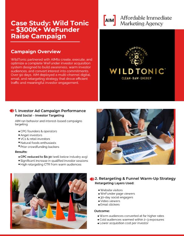 Wild Tonic activated AIM’s investor marketing system to support their WeFunder campaign.